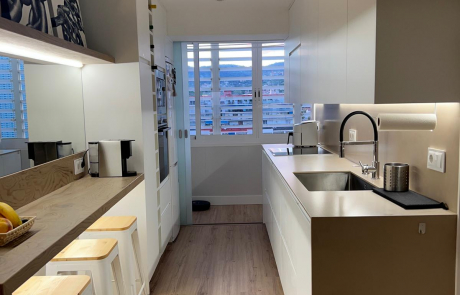 Si vas a integrar electrodomésticos empotrados o cambiar la distribución, es habitual actualizar la electricidad y asegurar una extracción correcta (campana y ventilación). Te asesoramos sobre normativa y soluciones eficientes.